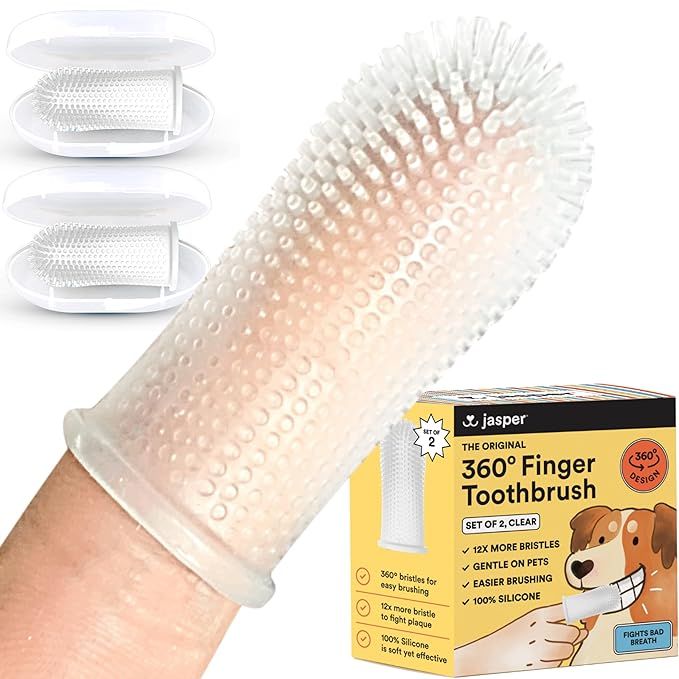 Jasper 360º Dog Toothbrush, Cat Toothbrush, Dog Tooth Brushing Kit, Dog Teeth Cleaning Kit, Dog Dental Care, for Use with Dog Toothpaste and Cat Toothpaste, 2-Pack Clear