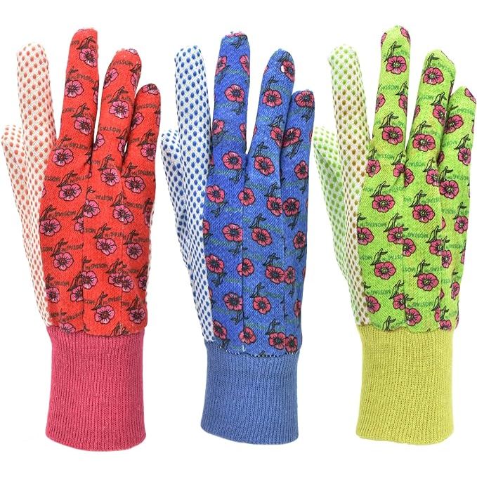 G & F 1852-3 Women Soft Jersey Garden Gloves, Women Work Gloves, 3-Pairs Green/Red/Blue per Pack
