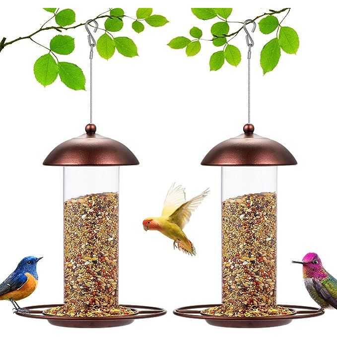 2 Pack Metal Wide Bird Feeders - Hanging Outdoor Bird Feeder with 1.6lbs Capacity, Strong Wire Lanyard for Garden Yard Decoration