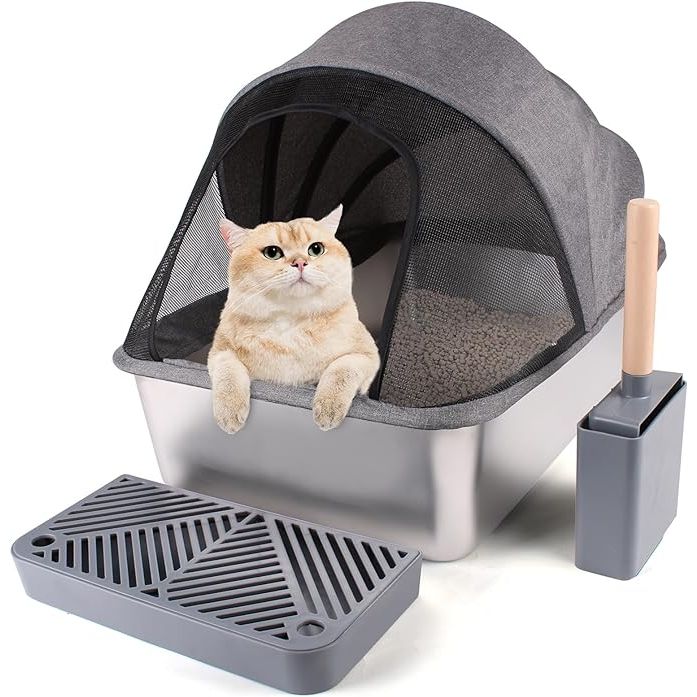Upgrade your cat's litter box experience with this XL Large Enclosed Cat Litter Box made of durable stainless steel. Designed for big cats, this spacious litter box provides plenty of room for your feline friend to do their business comfortably. The premium covered design helps contain odors and keeps litter inside the box, while the leak-proof construction ensures mess-free cleanup.