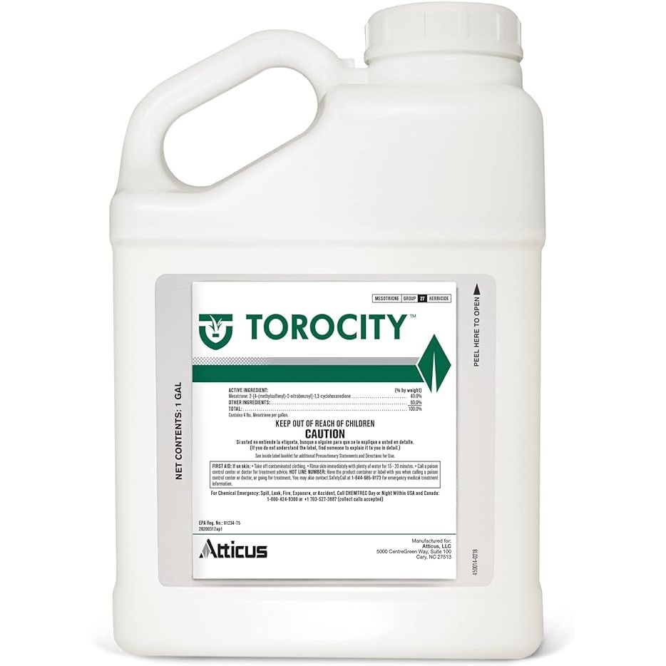 Torocity Turf Herbicide is a powerful selective weed killer designed for both commercial and residential lawns. This product contains the active ingredient Mesotrione, known for its control of a wide variety of broadleaf and grassy weeds. Torocity Turf Herbicide can be used as both a pre and post-emergent control, making it versatile for various stages of weed growth.