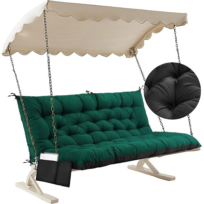 Porch swing cushions are a popular accessory for outdoor furniture, providing comfort and style to your porch swing. These cushions are typically designed to be weather-resistant, making them perfect for outdoor use. The waterproof outdoor swing cushions with straps and backrest in dark green are a versatile choice for your backyard or garden.