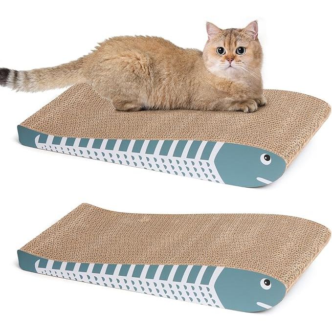 The ComSaf Cat Scratching Board 2 Pack is a set of two curved cat scratchers made from recycled cardboard. These scratch pads are designed to provide your kitty with a durable and long-lasting scratching surface to help maintain their claws and stretch their muscles. The double-sided design of the scratch pad ensures that it will last longer than traditional one-sided scratchers, saving you money in the long run.