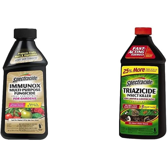 When used together, Spectracide Immunox Multi-Purpose Fungicide Spray Concentrate and Spectracide Concentrate Triazicide Insect Killer provide comprehensive protection for your plants against both fungal diseases and insect pests. By using these products according to their instructions and recommended application rates, you can keep your outdoor plants healthy and thriving throughout the growing season. Description by ChatGPT.