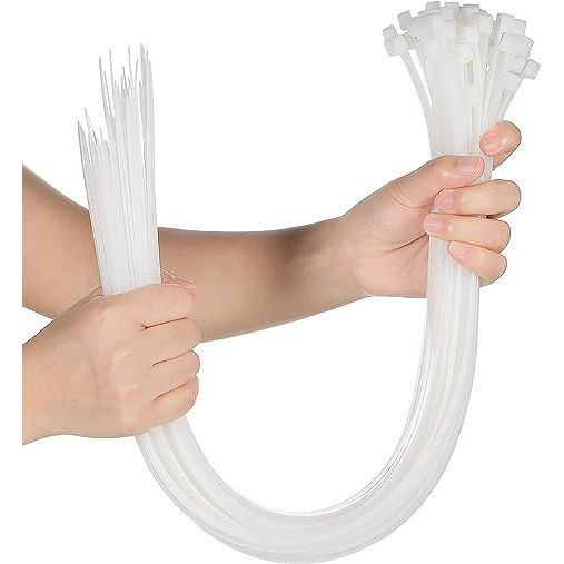 Quality material: these cable zip ties are made of nylon material, with a tensile strength at 49 lbs. or 99 lbs., the smooth edge can help fasten more quickly and smoothly, the curved tip can easily insert into the head, practical products for long-term usePackage includes: you will get 50 pieces of white nylon cable ties, the length of the wire cable ties is 24 inches/ 60 cm and the width is 7.9 mm, enough length and quantity for multiple useReliable cable tie: these strong zip ties are suitable for home, garden, office, and garage tidying; Not only can be applied for cable or wire organized and binding using, but also suitable for repairing fences, hanging heavy stuff, and so onFlexible reinforcement: 2 or more cable ties can be combined to extend the bundling length, or reinforce higher tensile strength, wide range of applicationEasy to use: these nylon zip cable ties are self-locking design, you just need to simply pass the tip through the hole and pull it to the point you want, then the crenelated curve inside completes the fixation