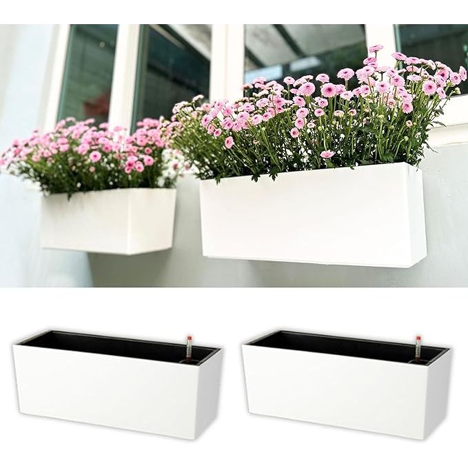 Create a beautiful balcony wall garden with these versatile outdoor planter boxes. The modern design pairs well with a variety of plants, making it easy to create a lush and vibrant display. Customize your space with these planters as a strawberry planter or for growing your favorite herbs and vegetables. With the water level indicator, you'll always know when to water your plants, ensuring they stay healthy and thriving. Description by ChatGPT.