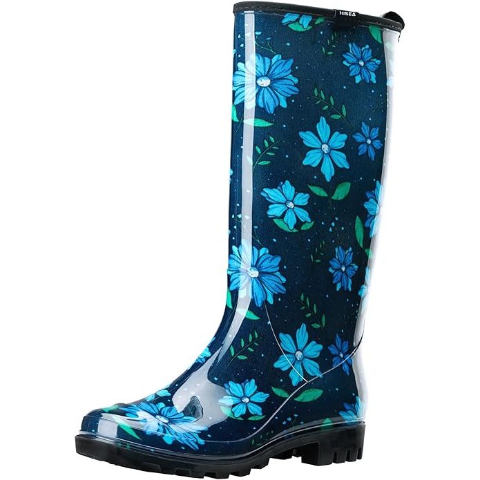 These rain boots are equipped with a comfort insole that offers cushioning for long walks or standing periods. The tall Wellington style provides a snug fit around the calves to keep water from seeping in. Whether you are gardening, walking the dog, or running errands in the rain, these HISEA Women's Rain Boots are a practical and fashionable choice to keep your feet dry and comfortable. Description by ChatGPT.