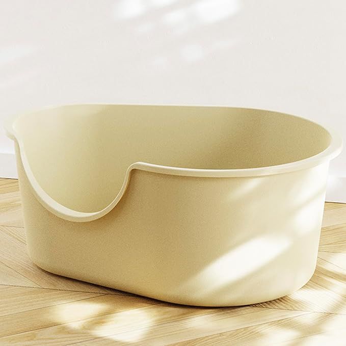 Cat Litter Corner Box with High Sides,Large Litter Box,nti-Splashing Kitty Litter Box,23.20" Lx16.30 Wx10 H(Creamy)