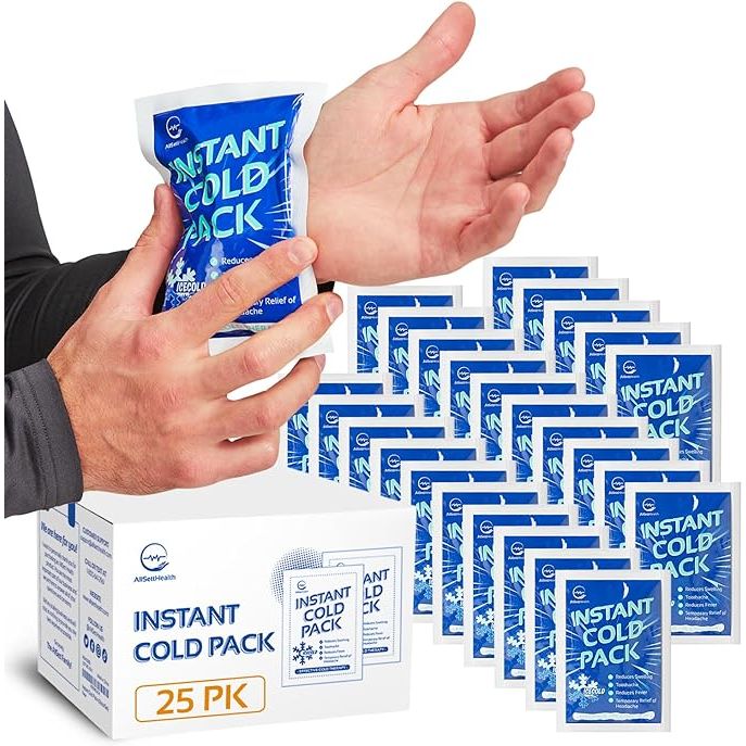 Instant Ice Cold Pack (6” x 4.5”) - 25 Packs Disposable Instant Ice Packs for Injuries | Cold Compress Ice Pack for Pain Relief, Swelling, First Aid, Toothache, Athletes & Outdoor Activities