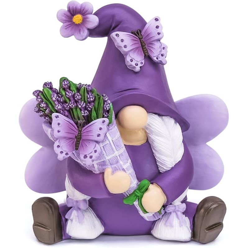 Add a touch of whimsy and charm to your home with these Lavender Gnomes decorations. Made of non-toxic and odorless resin, these adorable figurines feature lovely purple colors and cute details such as hands holding lavender flower bundles and a butterfly perched on the hat. The inclusion of sunflowers and butterflies adds to the overall spring atmosphere, making them perfect for Easter tiered tray decorations or garden decor.