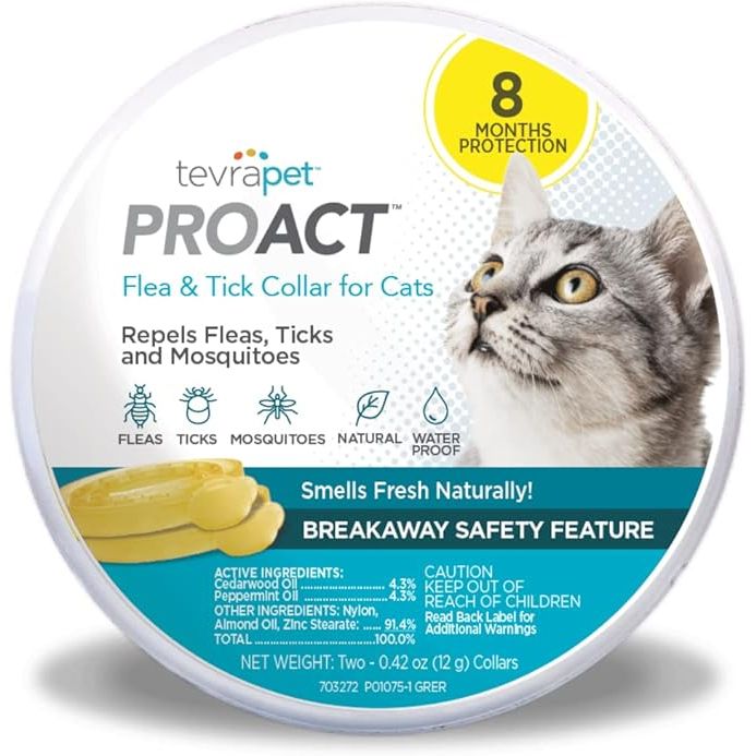 TevraPet Proact Flea and Tick Collar for Cats, 8 Months of Flea and Tick Protection, Repels Mosquitos - 2ct
