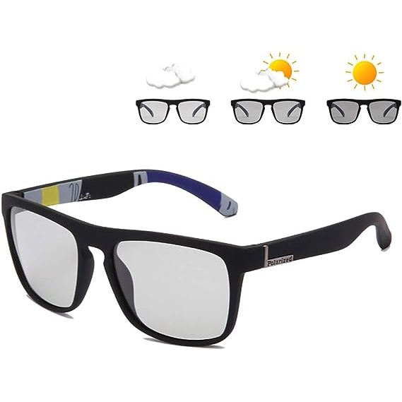 One of the standout features of these sunglasses is the intelligence photochromic lens. The lens changes color based on the intensity of UV light. In stronger sunlight, the lens will turn black, while in cloudy conditions, it changes to gray. At room or night, it becomes transparent. This photochromic feature allows for all-day wear and adapts to various lighting conditions.