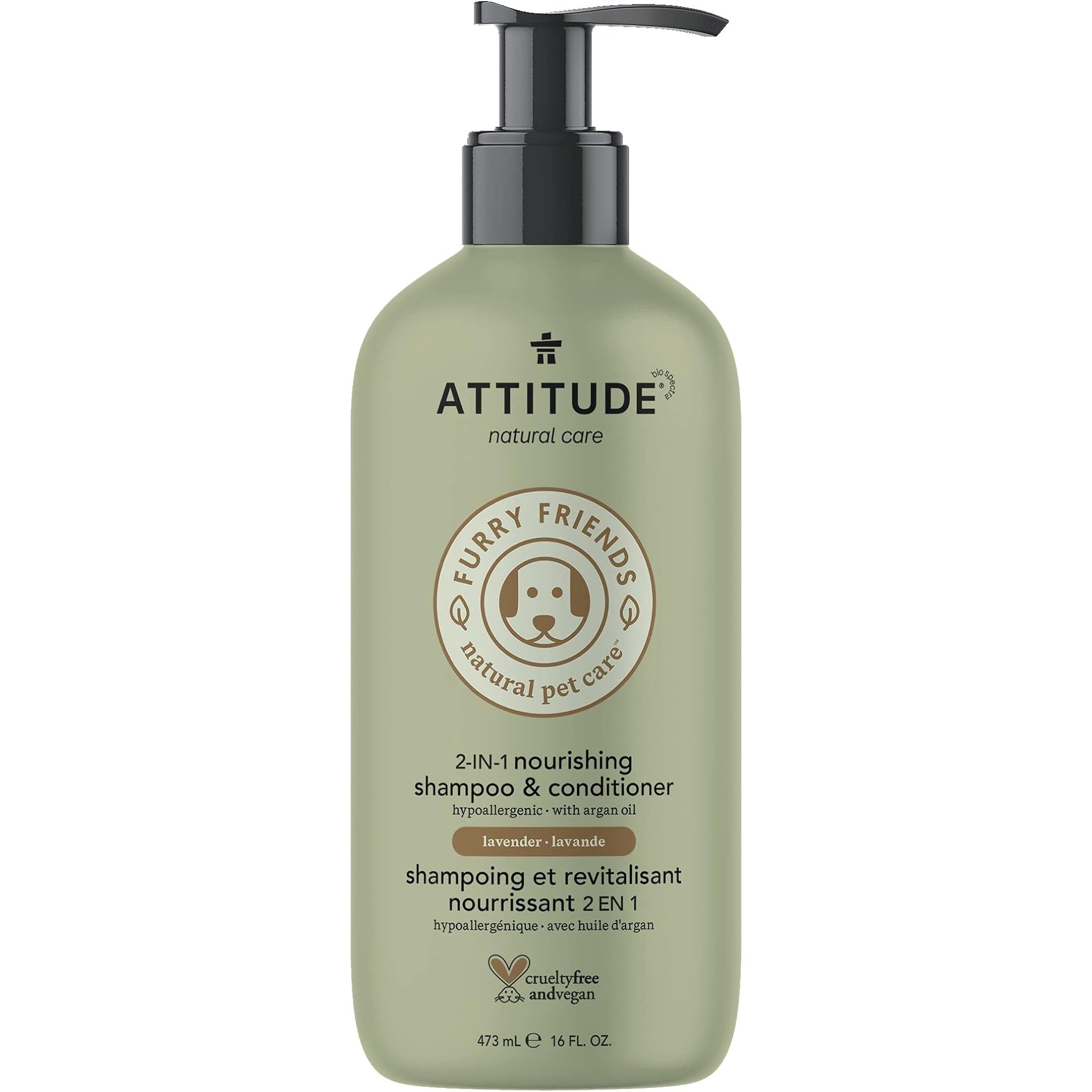 ATTITUDE Natural 2 in 1 Nourishing Shampoo & Conditioner for Cat & Dog, Hypoallergenic, Vegan and Cruelty-Free, Lavender & Argan Oil, 16 Fl Oz
