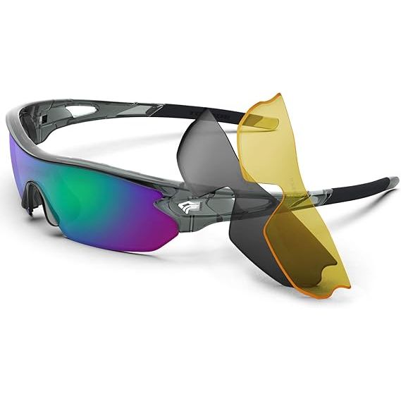 These sunglasses feature three interchangeable lenses, all with a 99% UV400 protection coating. This coating blocks 99% of harmful UVA and UVB rays, ensuring your eyes are well-protected. The main lens provides colorful vision, while the yellow lens is ideal for night activities and the black lens is polarized for driving and other outdoor activities. The sunglasses also enhance visibility by eliminating reflected and scattered light, making the scenery clearer and softer.