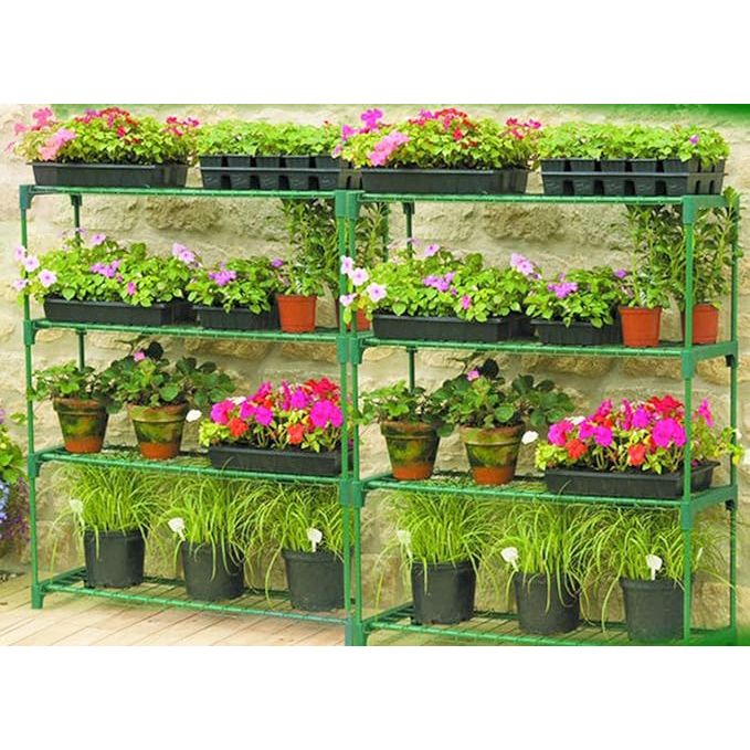 This free standing garden storage plant rack is easy to assemble and requires no tools for set up. Its compact size allows for easy placement in any space, while still providing ample storage for all your gardening essentials. The bright green color adds a pop of color to any garden or outdoor space, while the durable construction ensures that this shelving unit will be a long-lasting addition to your garden arsenal.