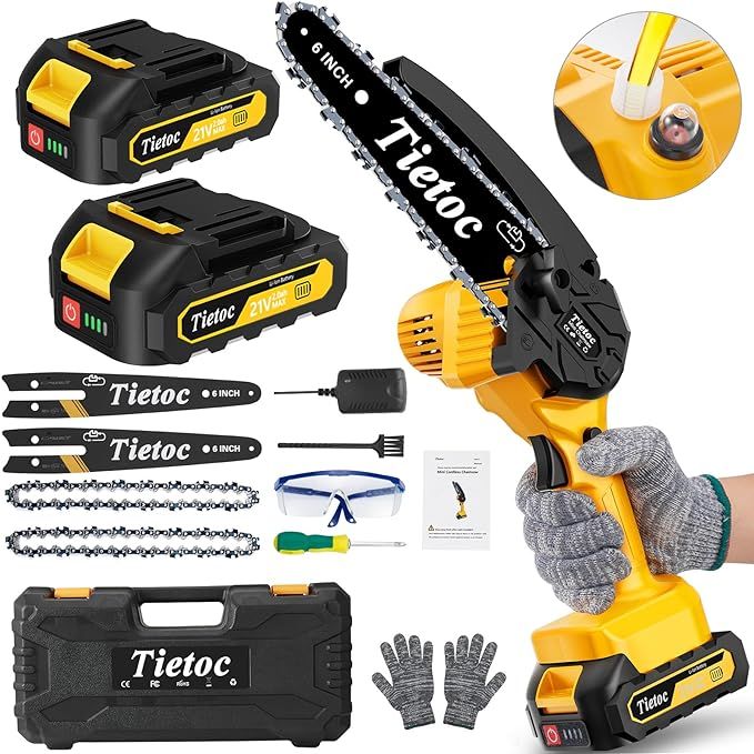 tietoc Mini Cordless Chainsaw, 6 Inch Handheld Chain Saw With Security Lock [Seniors Friendly], Battery Powered Super Saws With Manganese Steel Chain & Automatic Oiler, UPGRADE 2023