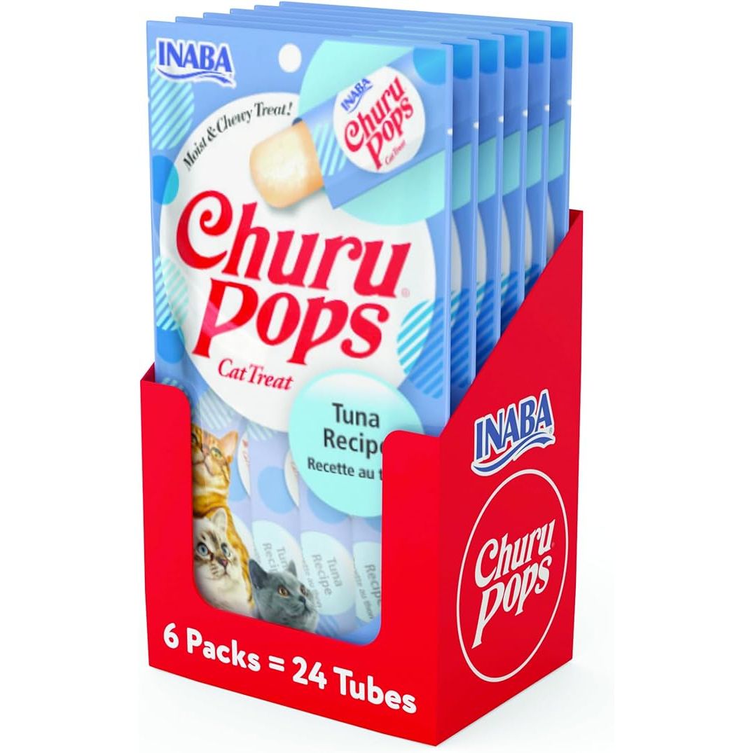 INABA Churu Pops, Grain-Free, Soft, Moist and Chewy Jelly Cat Treats with Vitamin E, 0.54 Ounces Each, 24 Tubes (4 per Pack), Tuna Recipe